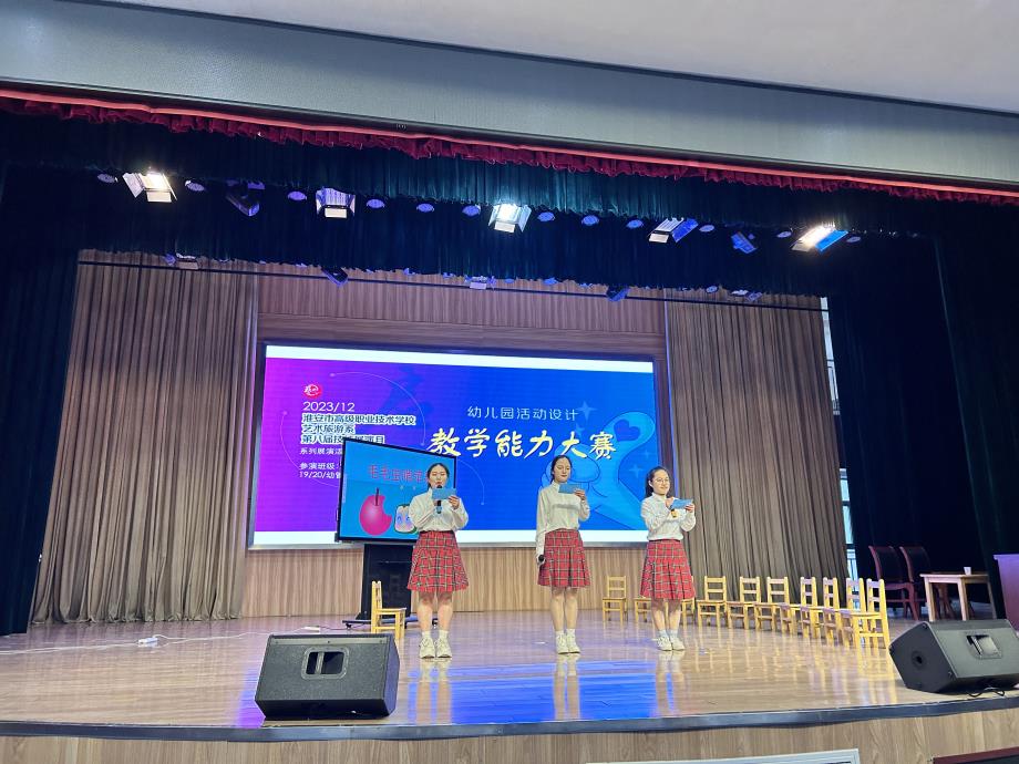 2023年(nián)12月(yuè)18日(rì),我校(xiào)藝術(shù)旅遊系幼兒(ér)園活動設計(jì)教學能(néng)力大(dà)賽成功舉辦。幼兒(ér)園活動設計(jì)教★學能(néng)力大(dà)賽是(shì)藝術(shù)旅遊系第八屆技(jì)能(néng)展演月(yuè)系列活→動之一(yī),大(dà)賽分(fēn)為(wèi)幼兒(ér)園教學活動設計(jì)(方案)比賽和(hé)幼兒(é r)園教學能(néng)力展示比賽兩個(gè)部分(fēn),活動由藝術(shù)旅遊系沈壽東(dōng)主任主持,楊春梅老(lǎo)師(shī)、朱永明(míng)老(lǎo)師(shī)、劉₹穎老(lǎo)師(shī)組織,19級幼兒(ér)發展與管理(lǐ)專業(yè)和(hé)21級幼兒(ér)保育專業(yè)全體(tǐ)同學參加了(le)本次比賽。